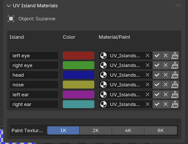 Generate paintable textures for individual islands